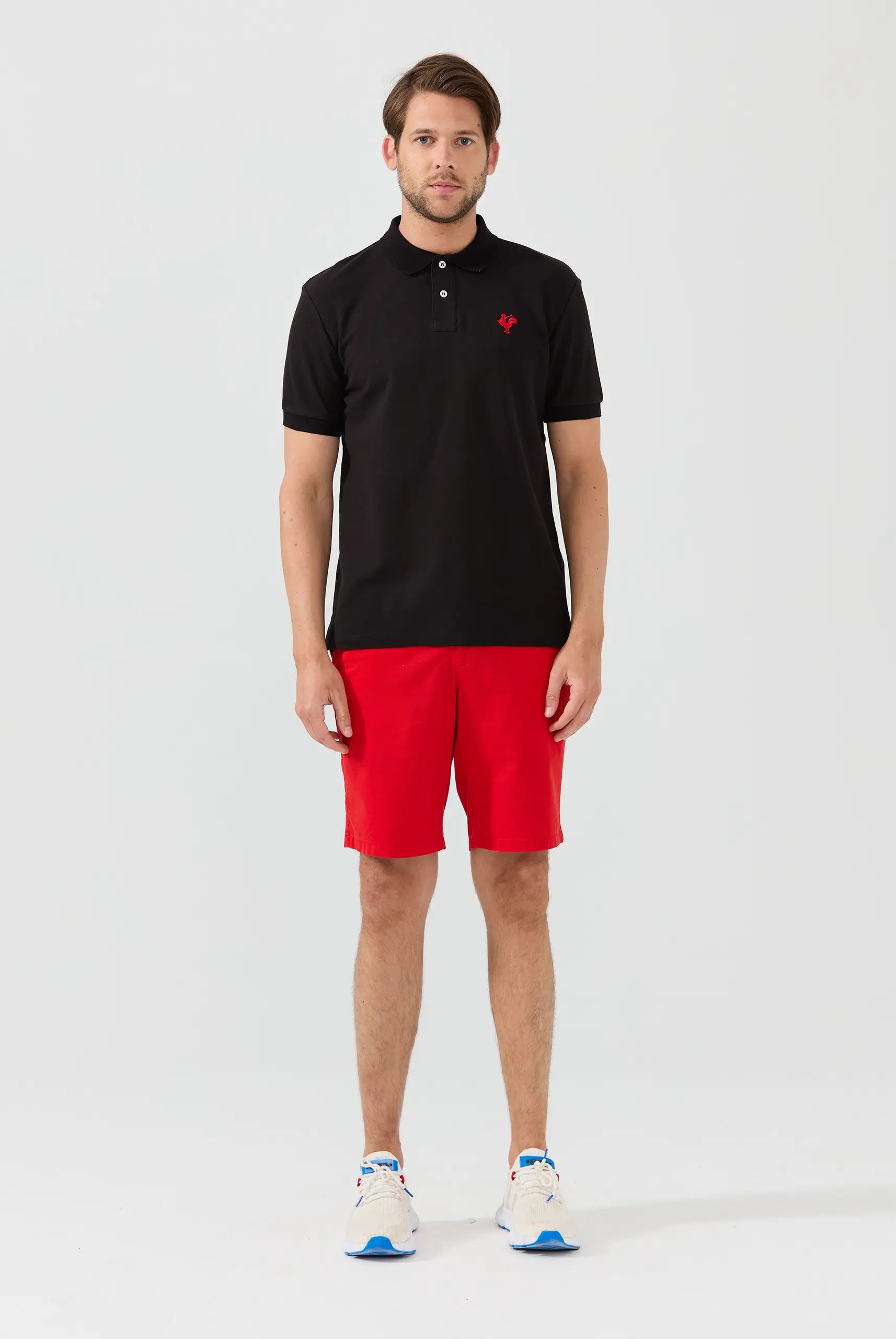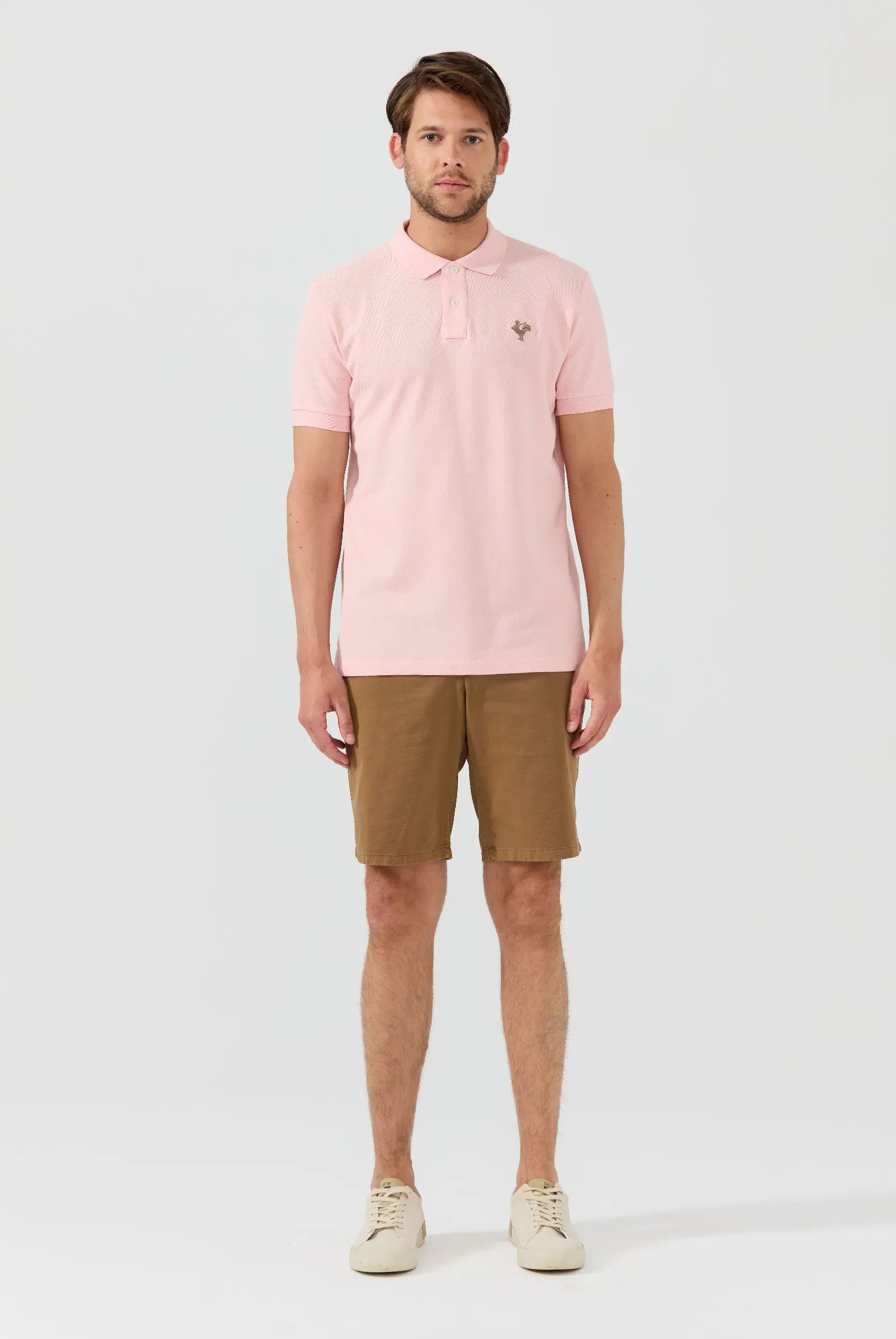 Ce short chino, confectionné en ton sur ton, possède une coupe Regular. Légèrement texturé, il est fabriqué à 97% de Coton et à 3% d’Élasthanne.