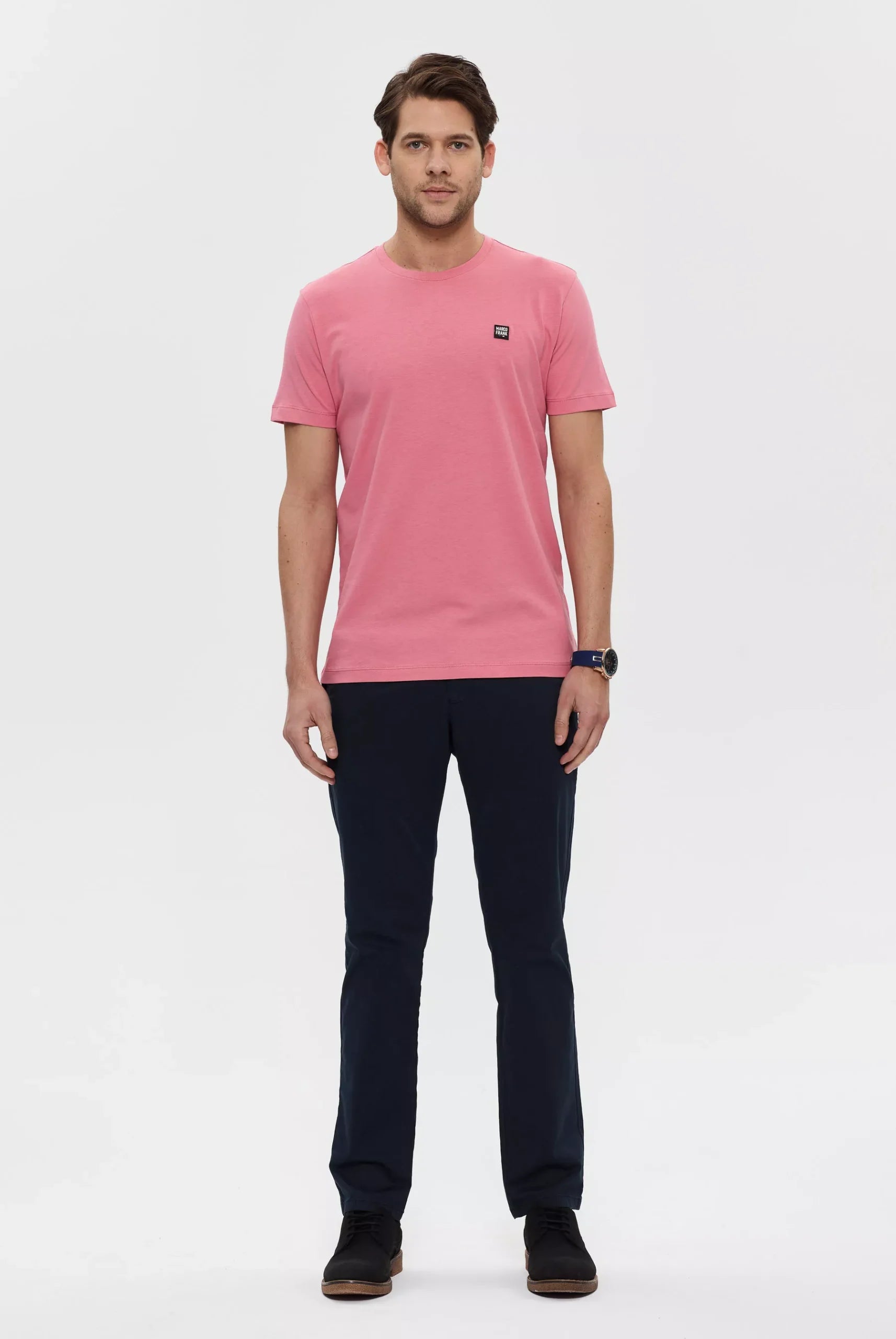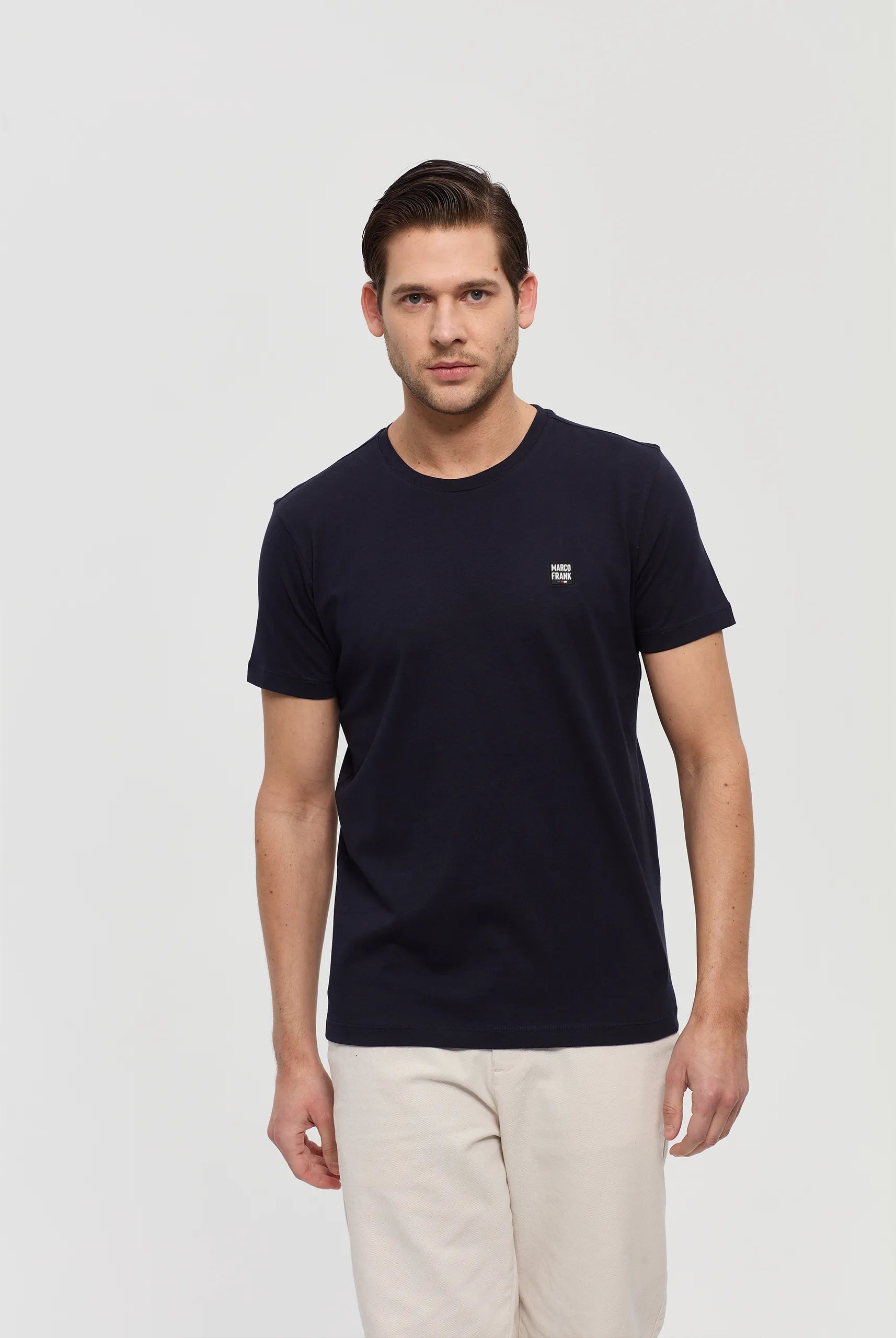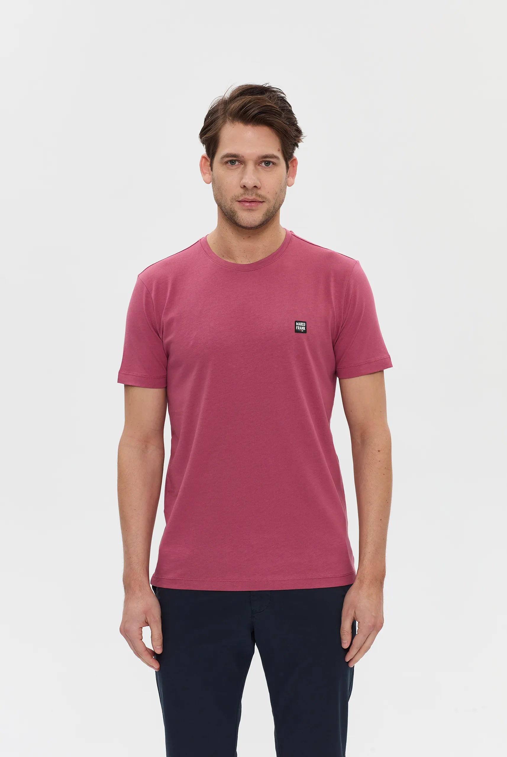 Confectionné en coton de Pima, ce t-shirt pour homme est doté d’un écusson en silicone représentant le logo Marco Frank sur la poitrine. Ce vêtement arbore un col rond et possède une coupe standard pour un style décontracté.