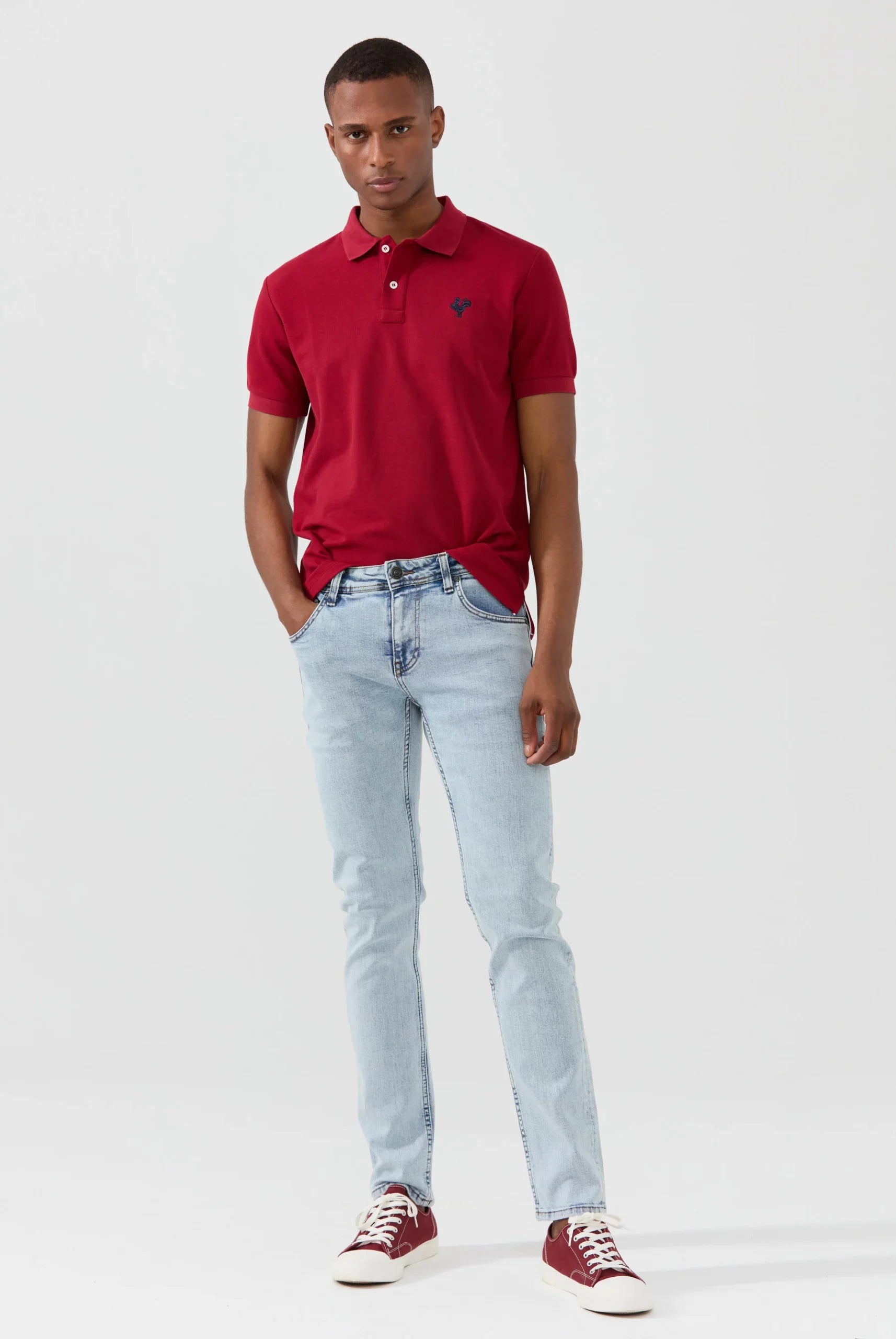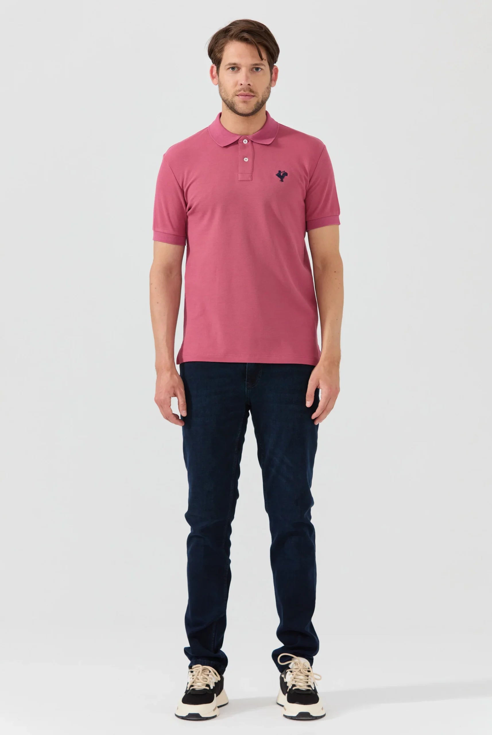 Doux et agréable à porter, ce polo à manches courtes est confectionné avec un coton de Pima. Le logo du coq en contraste est brodé sur la poitrine gauche, ajoutant une touche de style à ce vêtement. Ce polo à col rond est taillé dans une coupe standard pour une allure décontractée.