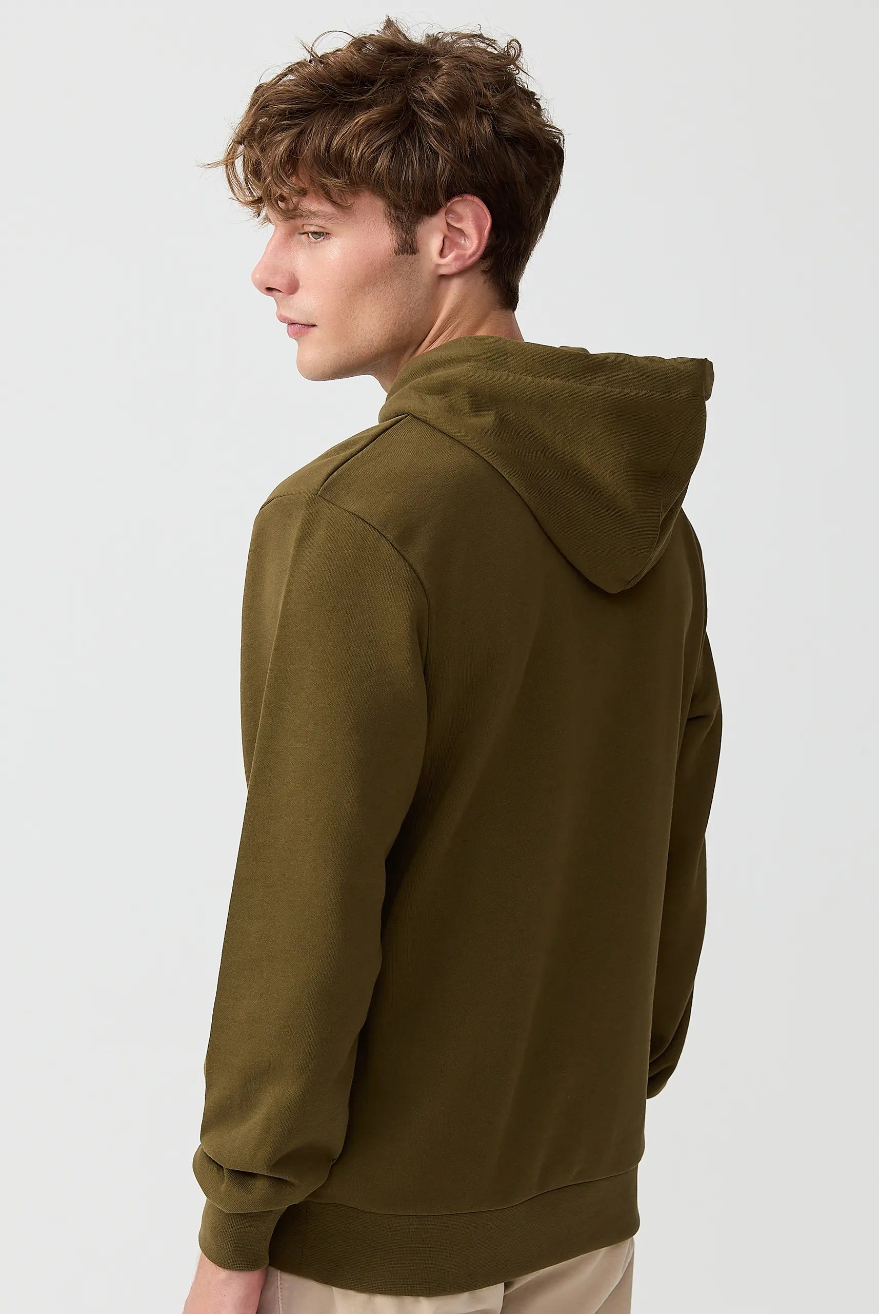 Ce sweat à capuche en molleton Flex est entièrement conçu en coton Pima de qualité supérieure. Il vous assure une grande liberté de mouvement et un confort optimal, idéal pour le sport et les activités quotidiennes.